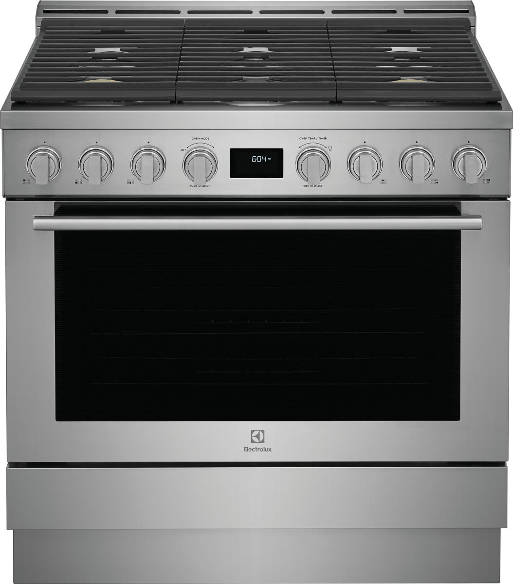 Full-framed linear grates, sturdy knobs, premium brass burner accents and the Electrolux signature pinstriped glass lend to the sleek design that make this range a focal point of your kitchen.